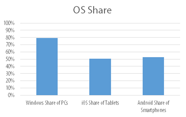 To put these numbers into a more practical perspective, it’s very common to find people who have a Microsoft Windows-based PC, an Apple iOS-based tablet, and a Google Android-based smartphone. In fact, in a recent survey my firm conducted of 450 U.S.-based respondents, that’s exactly what we found.